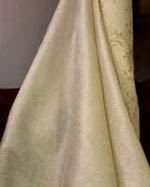 そして、4年前、博多織織元の10数年にもおよぶ努力が実を結び、しなやかなウェディングドレス生地が出来上がりました。MODE MIWAのデザイナー、山下籌皓(Yamashita Kazuhiro)は、その博多織生地を使って、気品あふれるドレスの数々を創りだしています。